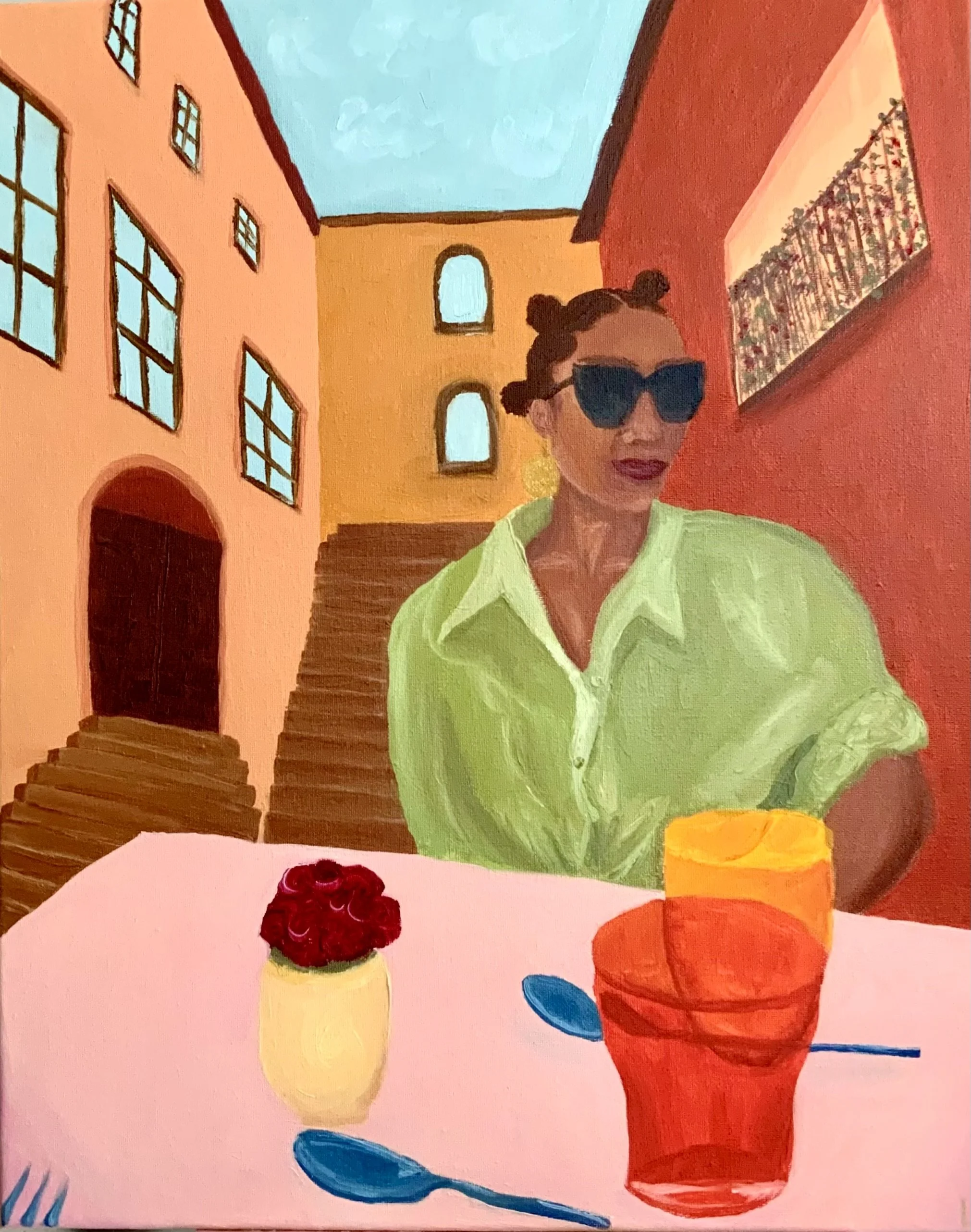 Faye Dove’s artistic practice is driven by curiosity. Each piece’s medium, style, and execution are a result of a creative investigation and interrogation of our world. Oil painting is her primary method of exploration, though her practice has led her to acrylic, watercolor, oil pastel, and textile mediums. Faye does not seek answers, but rather intimacy with places of uncertainty. Themes of Black and Guatemalan identity, fear, interconnection, legacy, and loneliness are common threads in Faye Dove’s portfolio.